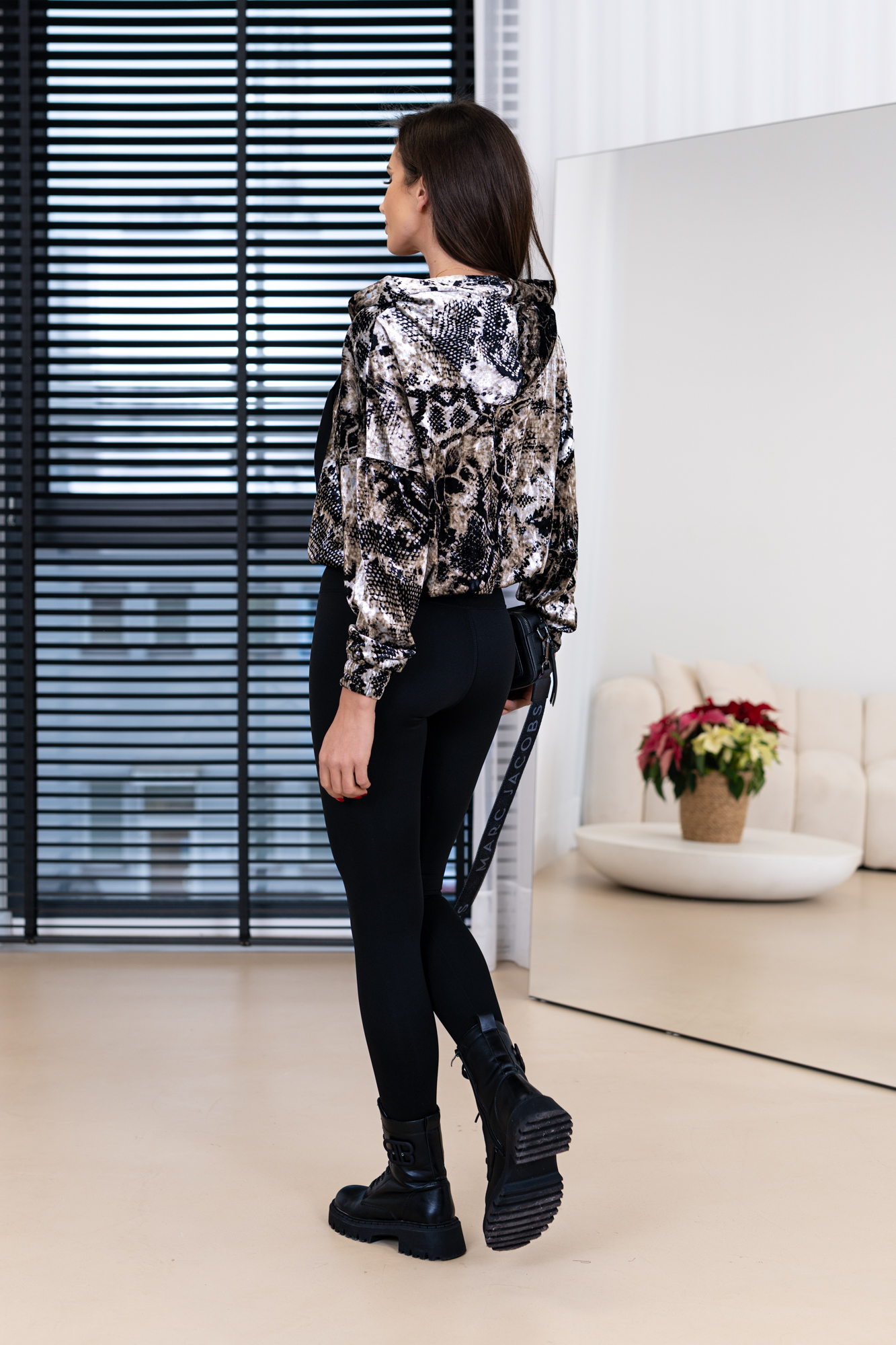 Stylowa bluza z miękkiego weluru w modny zwierzęcy print. Lekko połyskująca tkanina i wygodny krój sprawiają, że to idealny model na co dzień i wieczorne wyjścia. Komfortowa, efektowna i ultrakobieca — wyróżni każdą stylizację.