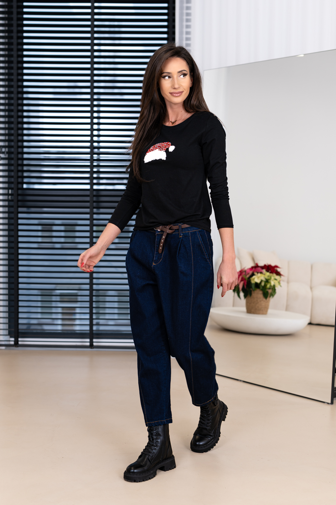 Bluzka z uroczą aplikacją idealna gdy na dworze czuć zimę a wokół śnieg. Miękka, wygodna i idealna na zimowe stylizacje — wprowadzi klimat w subtelny, kobiecy sposób.