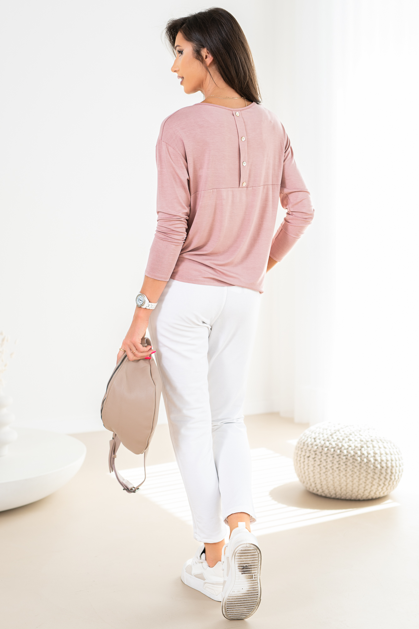 Urocza bluzka z delikatnej bawełny w pudrowym kolorze z praktyczną kieszonką to must-have dla miłośniczek elegancji.