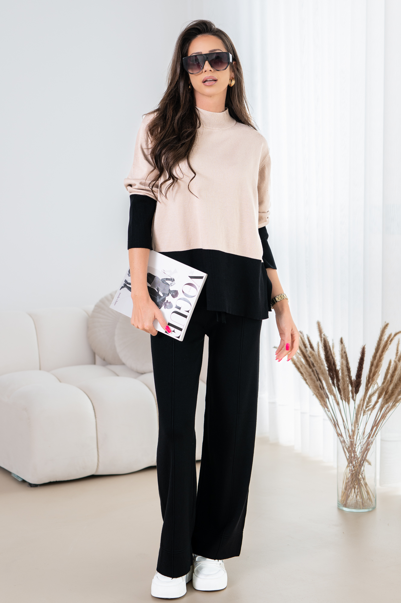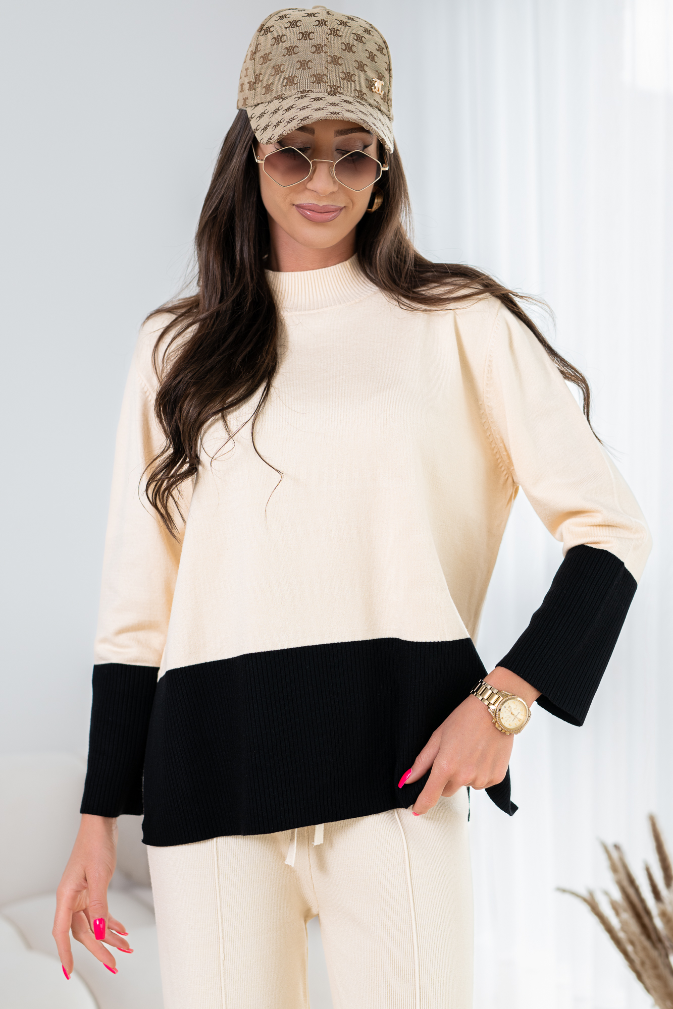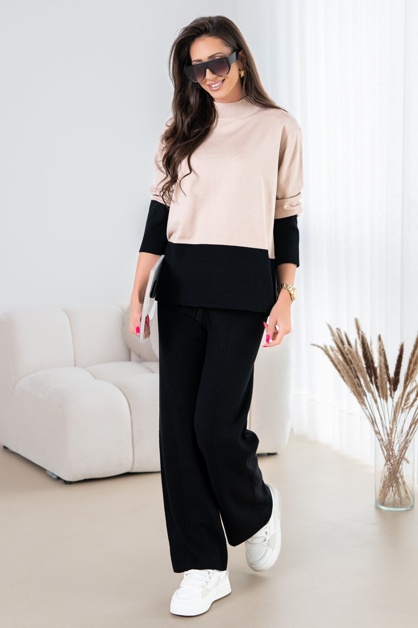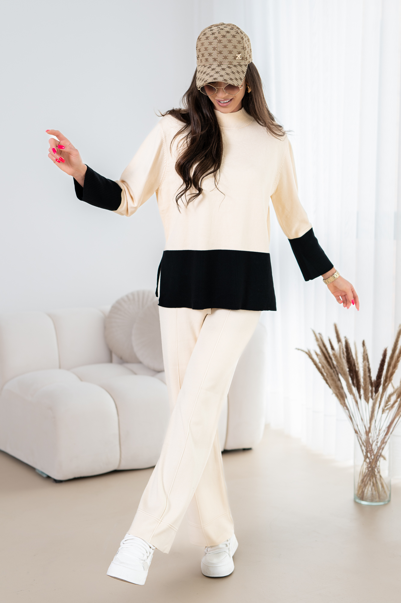 Kolor | jASNY BEŻ Z CZARNYMI SPODNIAM, Śmietankowy |