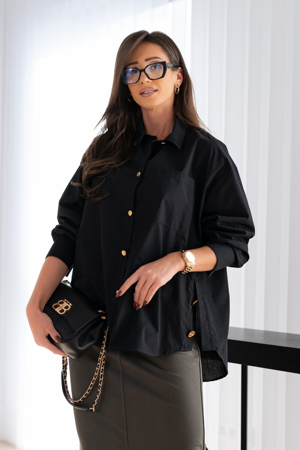 Oversize’owa, przedłużana koszula z bawełnianego materiału.