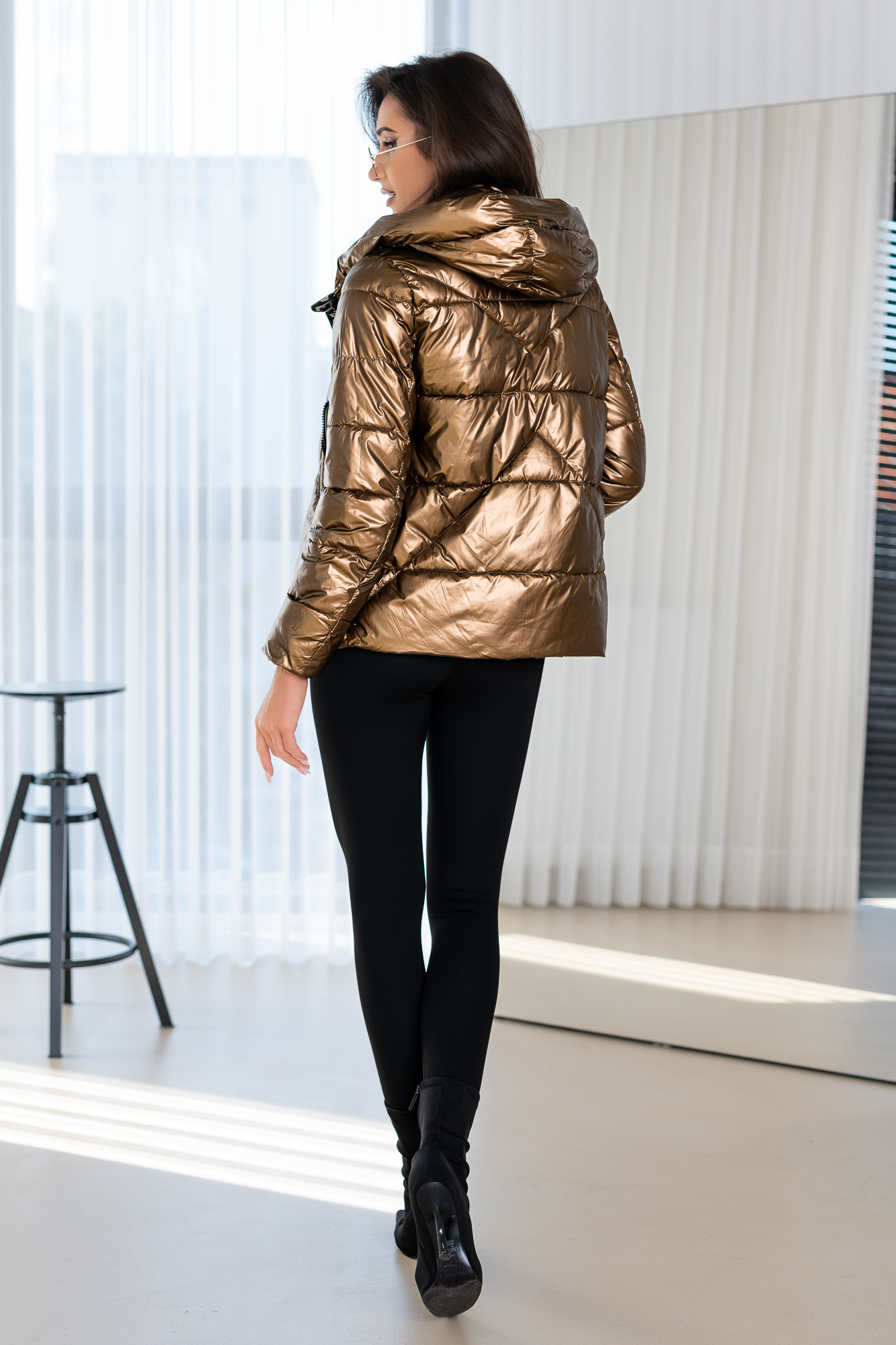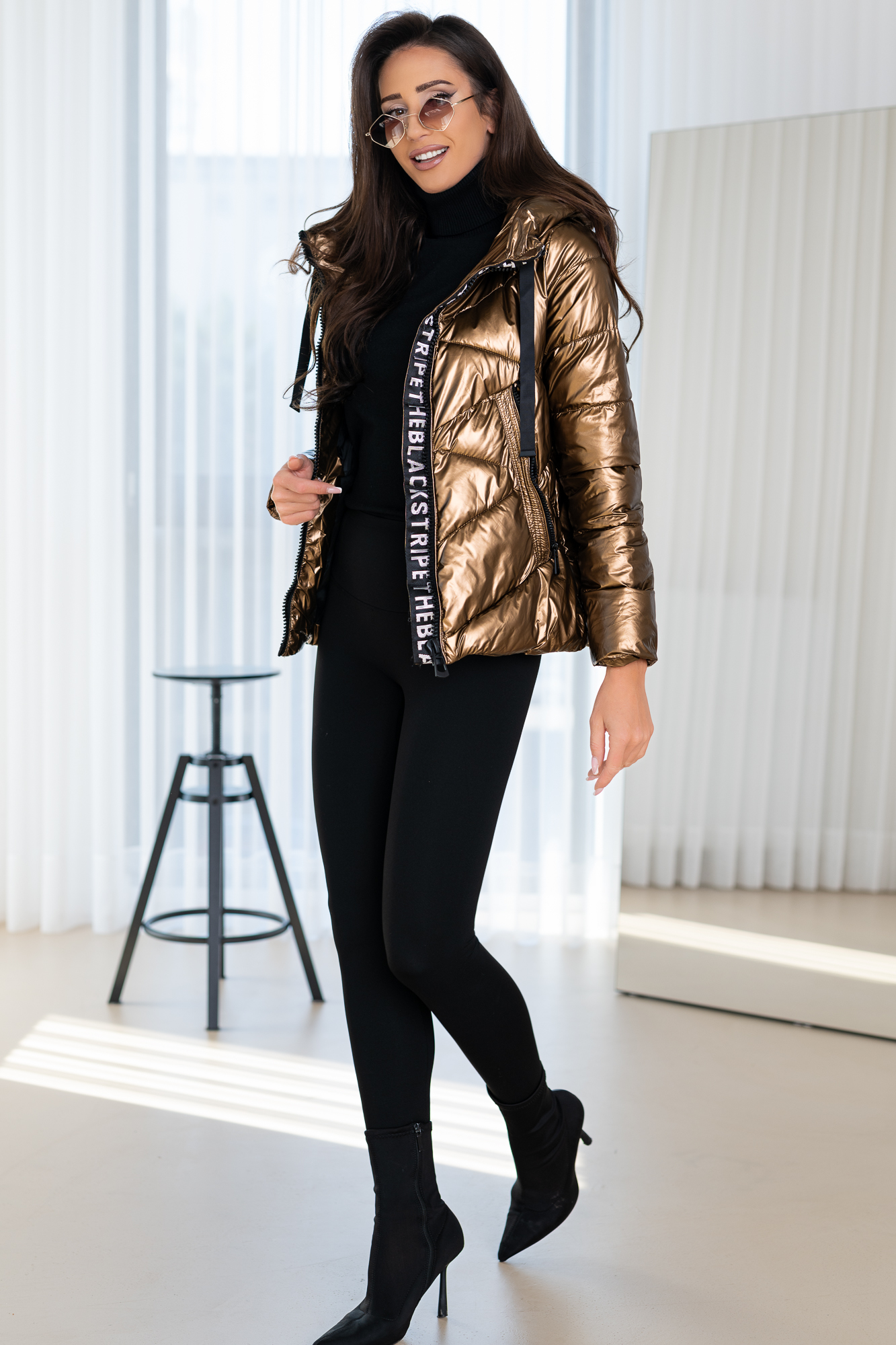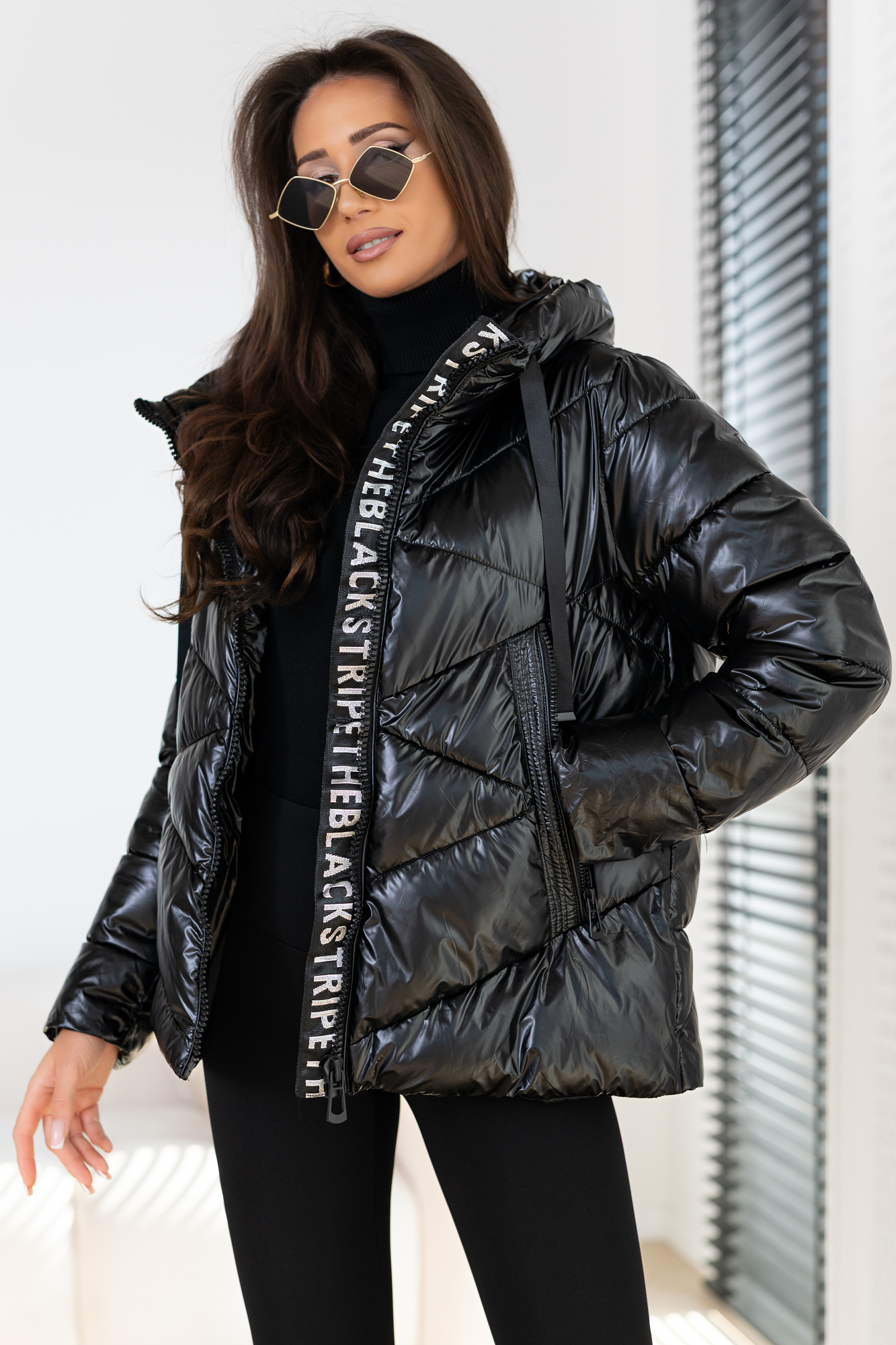 Nowoczesna, połyskująca kurtka puchowa, zaprojektowaną z myślą o funkcjonalności i wyrazistym stylu.