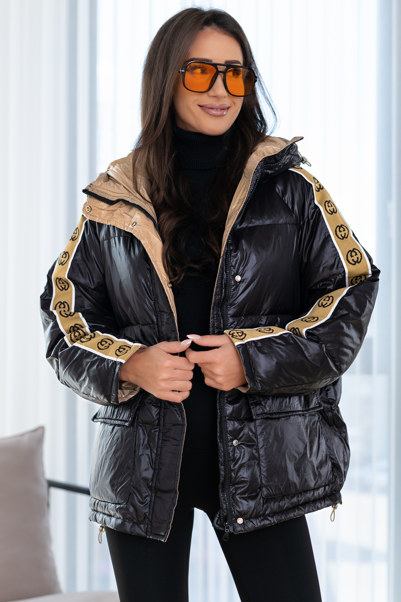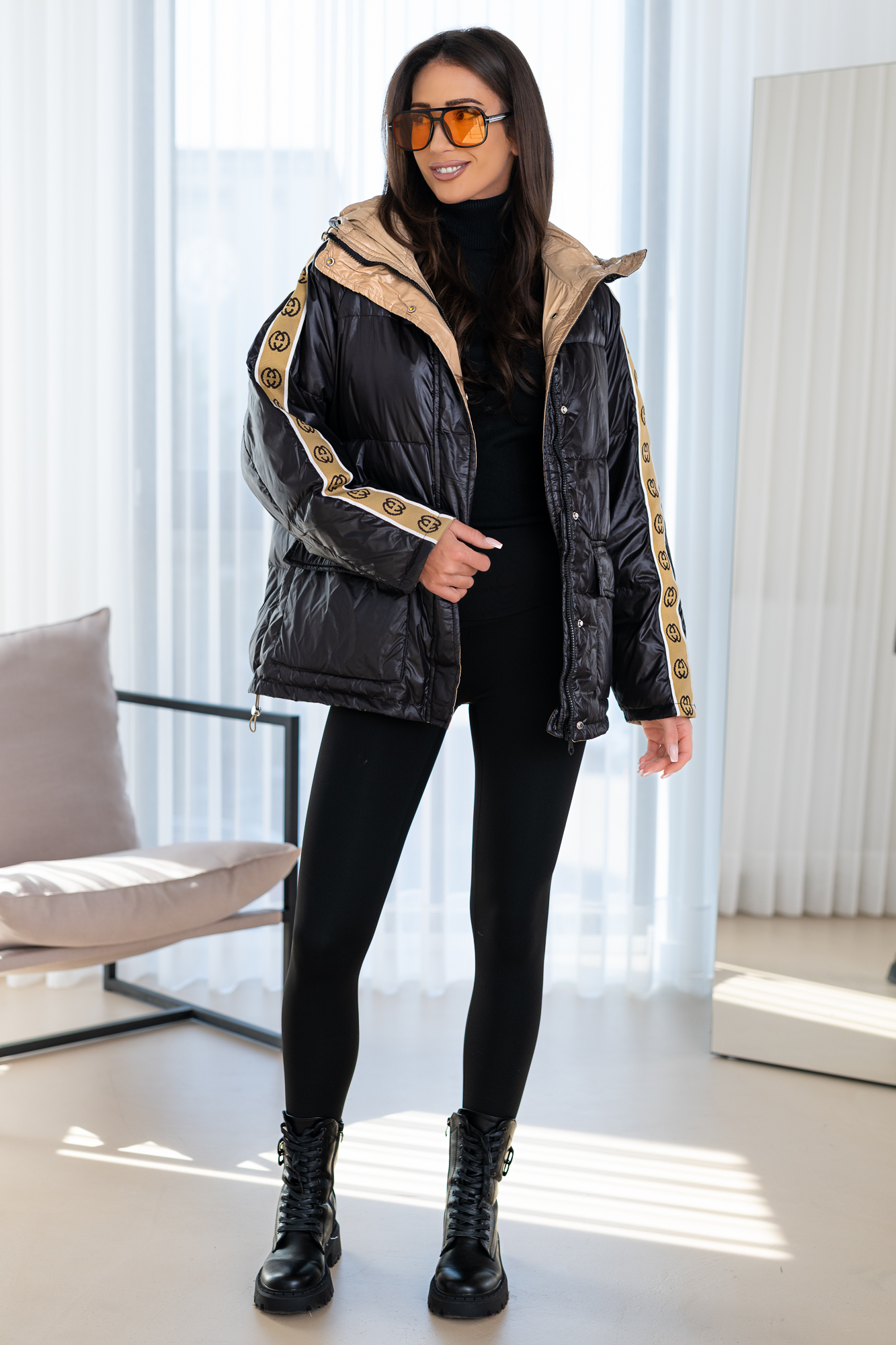 Dodaj odrobinę luksusu do swojej jesiennej lub zimowej garderoby z naszą modną i funkcjonalną kurtką czarno-beżową. Ta elegancka kurtka łączy w sobie wyrafinowanie z komfortem, dzięki czemu jest idealnym wyborem na każdą okazję. Wykonana z trwałego poliestru, zapewnia doskonałą ochronę przed zimnem, nie kompromitując przy tym stylu. Charakterystyczne beżowe paski z detalami na rękawach dodają jej nowoczesnego wyrazu, a wygodne kieszenie są praktycznym dodatkiem. Subtelne taliowanie i kontrastowy kaptur podkreślają kobiecy fason. To kurtka, która łączy w sobie trendy mody z niezbędną funkcjonalnością na chłodniejsze miesiące.