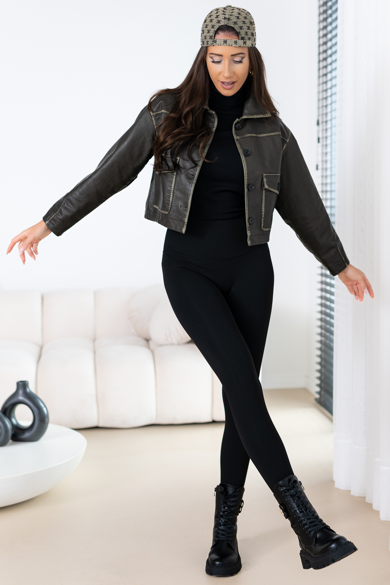 Przedstawiamy naszą wyjątkową kurtkę, która stanie się niezastąpionym elementem Twojej garderoby. Uszyta z najwyższej jakości materiału imitującego skórę, kurtka łączy w sobie elegancję i nowoczesny styl, jednocześnie dbając o komfort każdego ruchu. Jej perfekcyjnie dopasowany krój idealnie podkreśla kobiecą sylwetkę, dodając szyku każdej stylizacji. Proste guziki i precyzyjnie wykończone detale dodają jej wyjątkowego charakteru, czyniąc ją idealnym wyborem zarówno na co dzień, jak i na specjalne okazje. Zanurz się w luksusie i poczuj, jak nasza kurtka dodaje Ci pewności siebie!