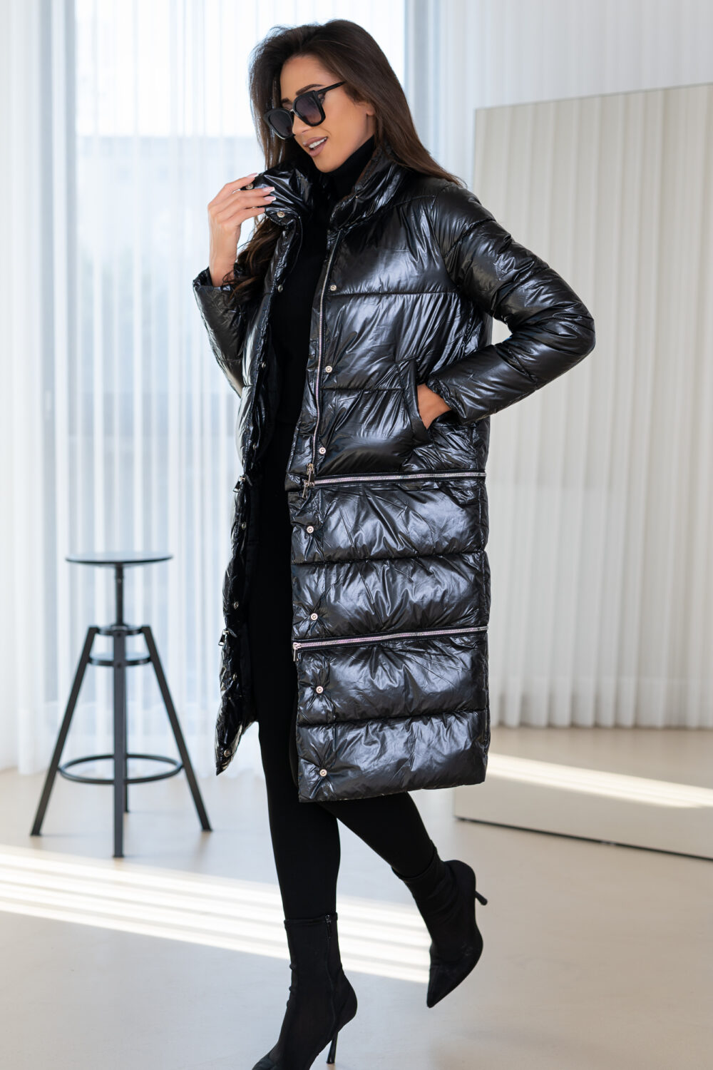 Transformacja w Twoim stylu z tą niezwykłą, czarną kurtką puchową 3 w 1! Ta długa, błyszcząca kurtka to innowacyjne rozwiązanie dla kobiet, które cenią sobie wszechstronność i chcą dopasować swój wygląd do każdej okazji. Dzięki możliwości rozpięcia na trzy różne długości – długa, średnia i krótka – możesz stworzyć idealny look na każdą pogodę i stylizację.