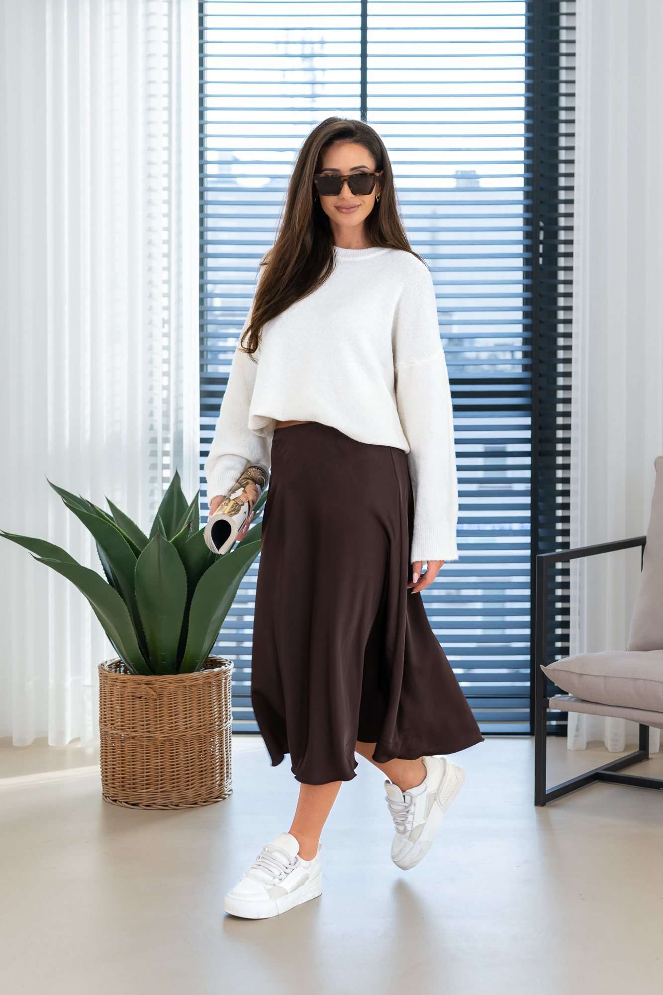 Modelka ma 178cm wzrostu i nosi rozmiar „S”
