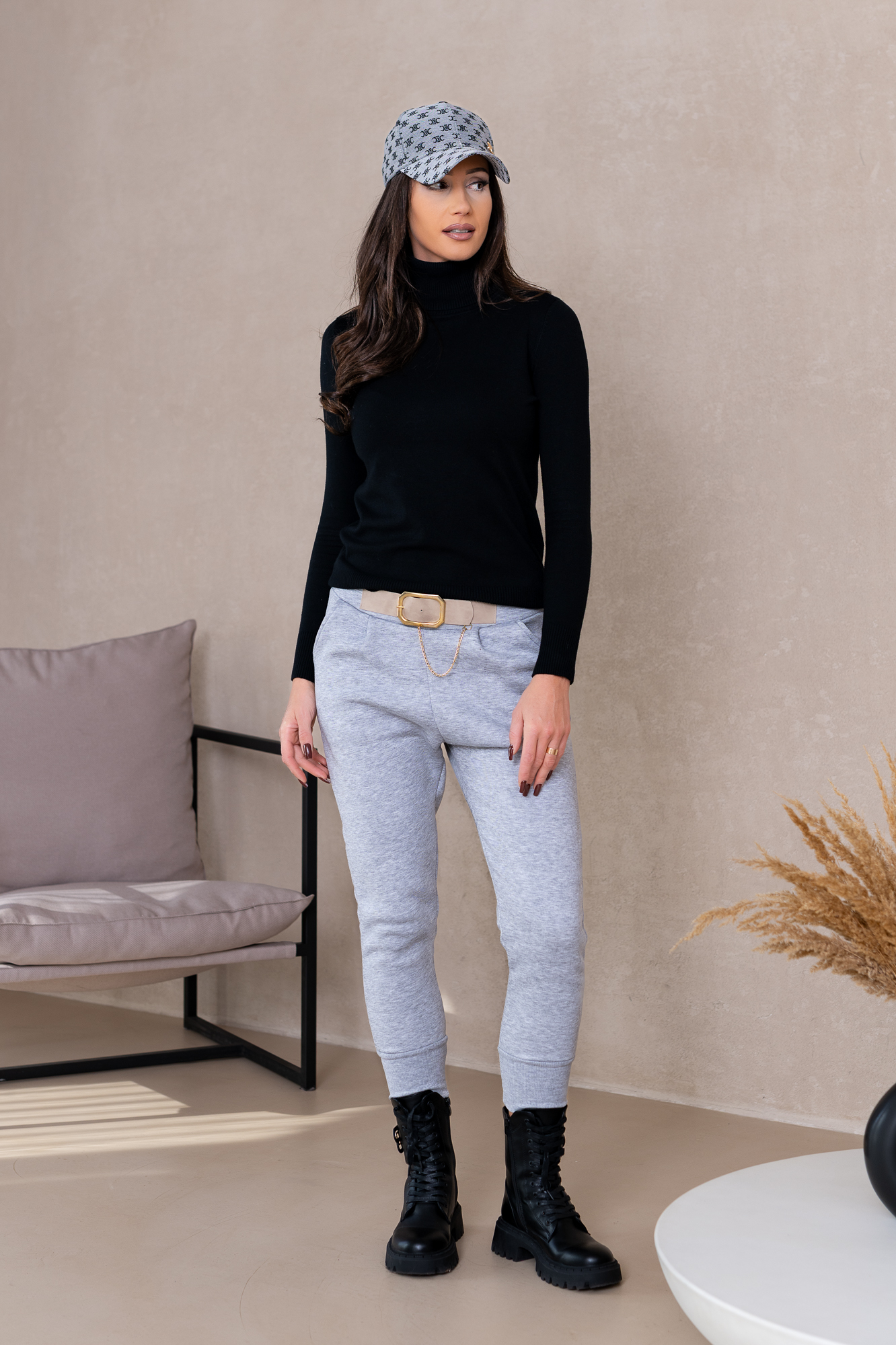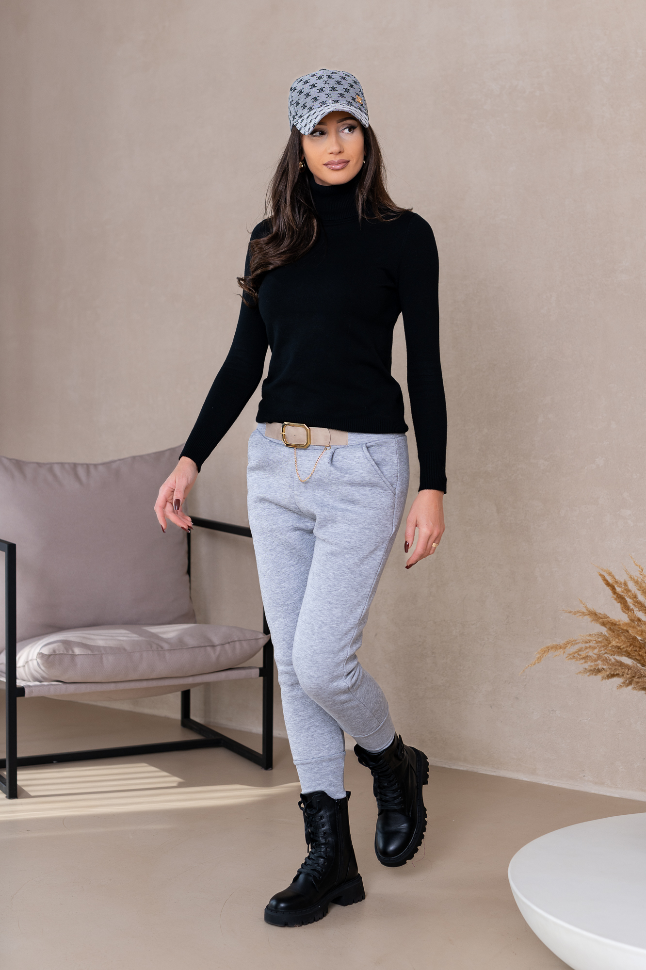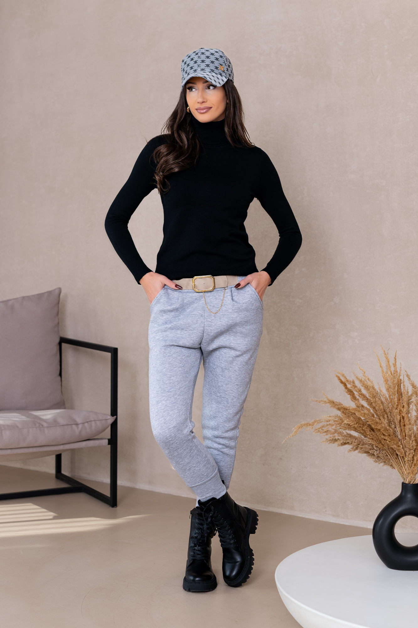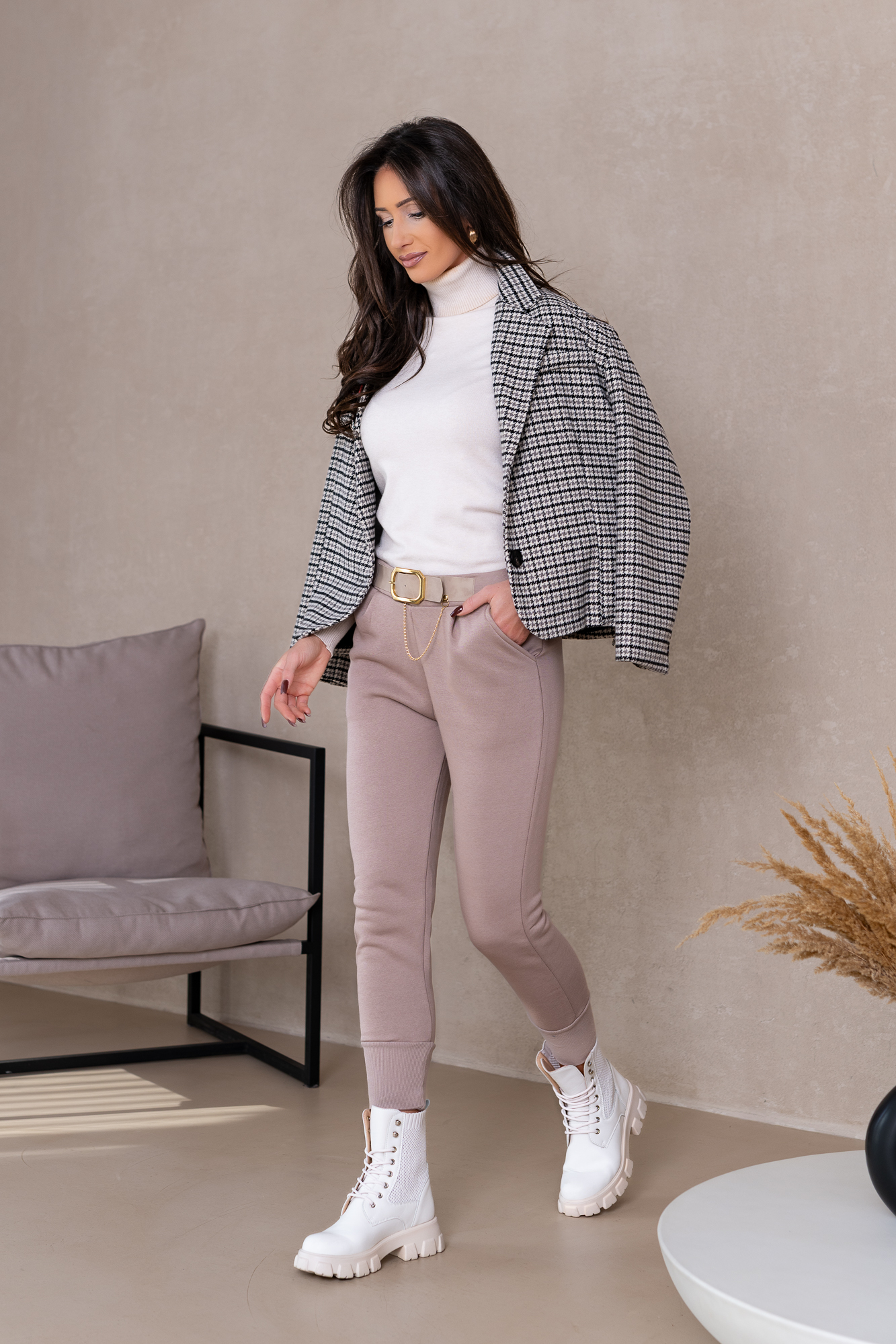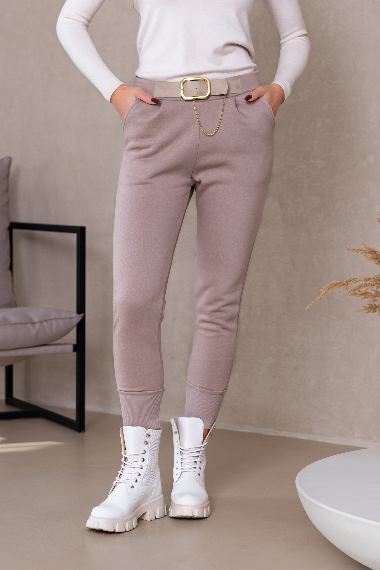 Spodnie, które są niezbędnym elementem każdej garderoby. Wykonane z najwyższej jakości miękkiego/grubego materiału, zapewniają komfort noszenia i doskonałe dopasowanie przez cały dzień. Ich nowoczesny krój z elastycznym wykończeniem nogawek oraz stylowy, ozdobny pasek podkreślają sylwetkę i dodają wyrafinowania każdej stylizacji. Spodnie posiadają praktyczne kieszenie, które zwiększają ich funkcjonalność, czyniąc je idealnym wyborem zarówno na casualowe wyjścia, jak i bardziej formalne spotkania. Te spodnie będą Twoim ulubionym wyborem na każdą okazję. JAKOŚĆ PREMIUM – ocieplone.
