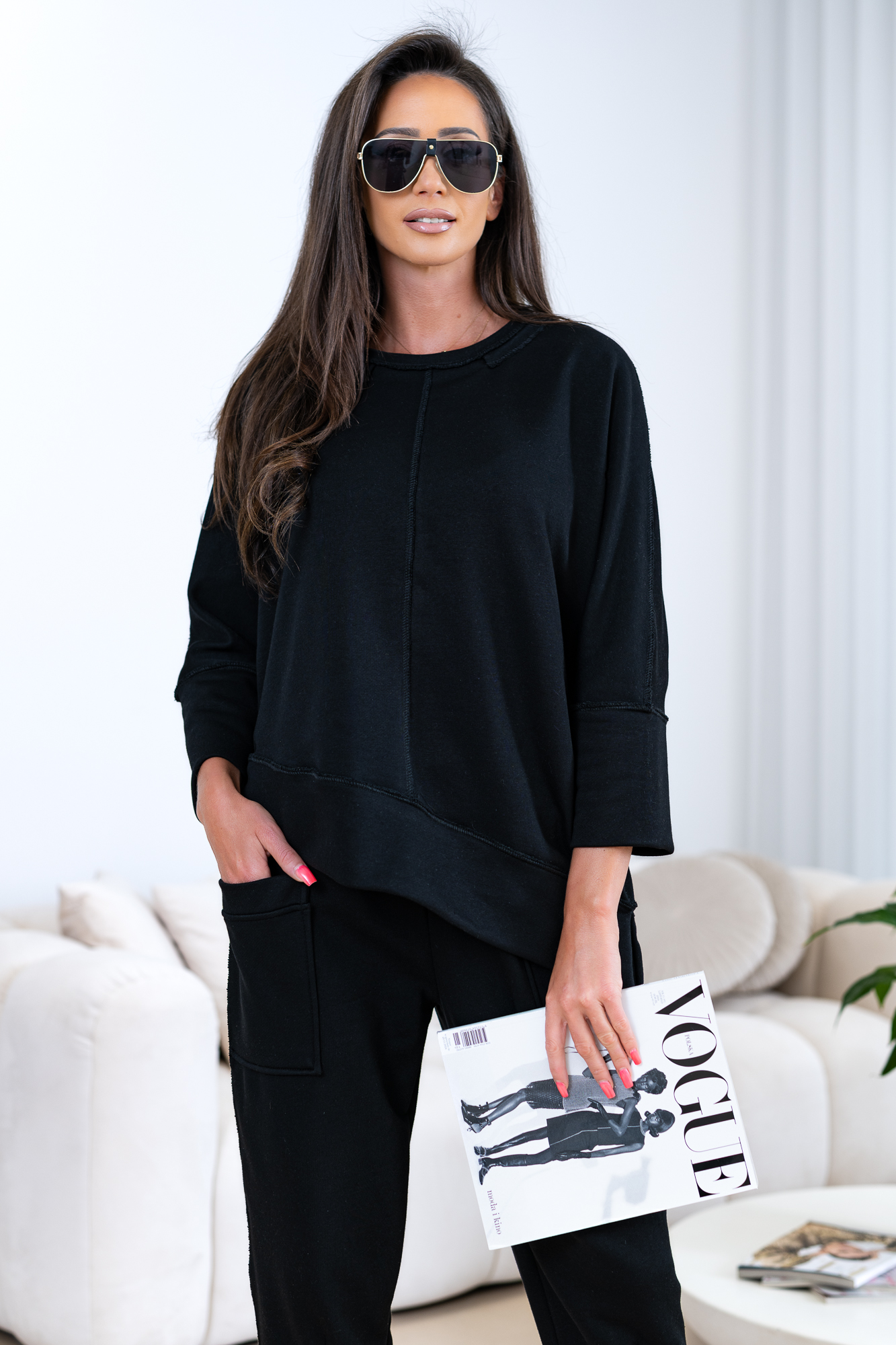 Viralowa bluza oversize uszyta z najwyższej jakości bawełnianej dzianiny, która jest wyjątkowo przyjemna w noszeniu.  Bluza posiada ciekawe przeszycia, które nadają jej wyjątkowego stylu. Materiał to wysokogatunkowa  bawełna – dzięki temu zestaw jest nie tylko miękki i przewiewny, ale także trwały, szybkoschnący i odporny na zmechacenia. Idealny zarówno na co dzień, jak i do stylizacji w duchu „sportowej elegancji”. Świetnie łączy się z masywnymi sneakersami, basicowymi T-shirtami czy eleganckimi dodatkami. To must-have w garderobie każdego, kto ceni wygodę i modny, luźny look