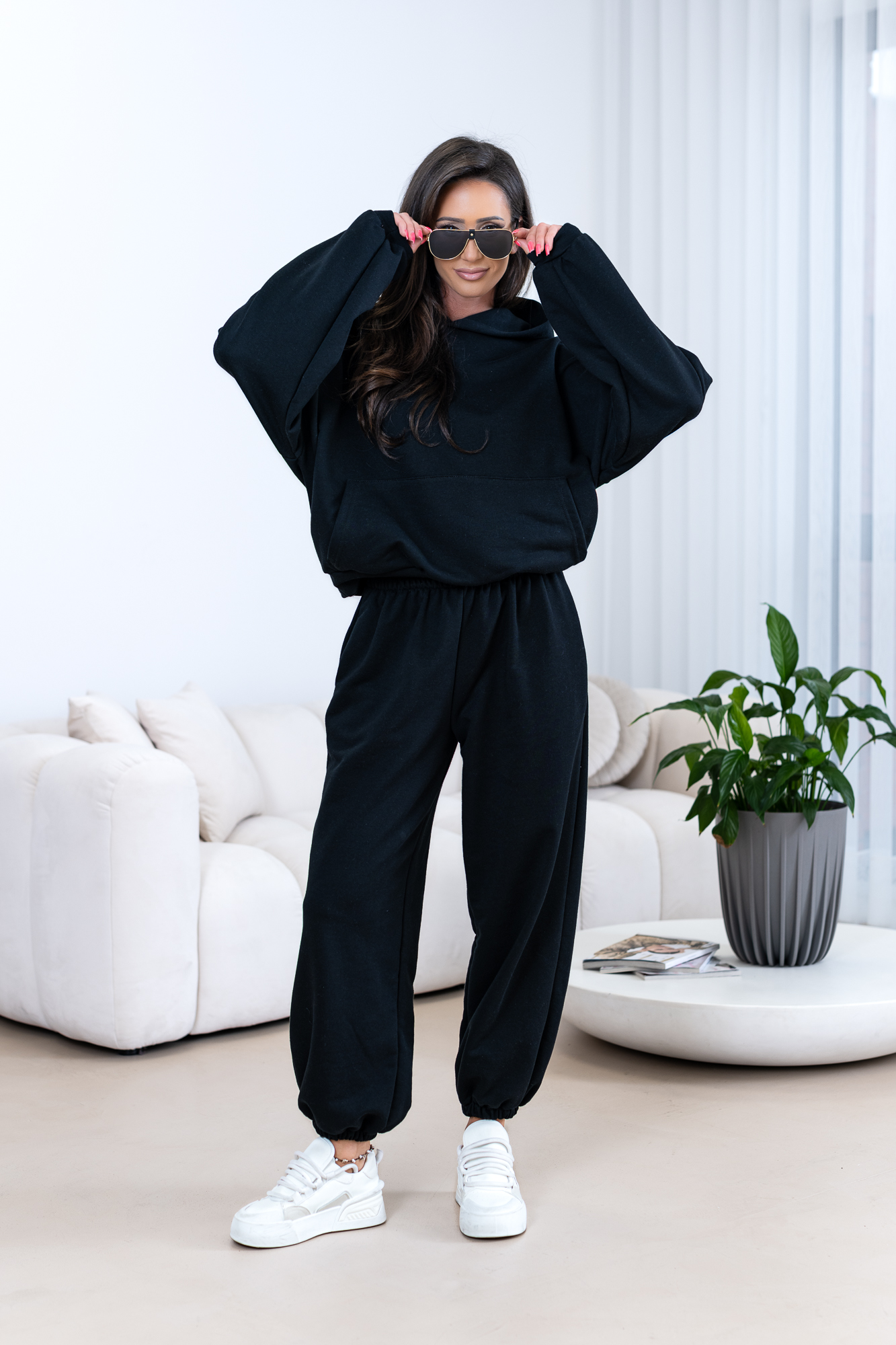 Kompletny zestaw uszyty z najwyższej jakości bawełnianej dzianiny, która jest wyjątkowo przyjemna w noszeniu i otula. W skład kompletu wchodzi nasza viralowa, oversize’owa bluza kangurka z kapturem oraz luźne spodnie baggy z gumką w pasie i na nogawkach.